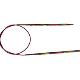 Symfonie Fixed Circular knitting needles are made from laminated Birchwood and its connectors are made from nickel plated brass. Fixed Circular needles allow you to knit back and forth like straight needles, as well as knit 'tubular' projects such as socks, cowls, hats etc. The biggest advantage of fixed circular needles is that they allow for knitting of tubular garments with a large diameter as opposed to DPNs which can be used to knit only smaller diameter tubes. With fixed circular needles, one can knit small tubes using the magic loop method, or knit using two circular needles at once to work the round. Another remarkable advantage of knitting with circular needles is that your project sits in your lap as you work, instead of hanging off the needles, which takes the weight off your wrists and proves very helpful when knitting a large heavy project.